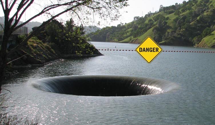 Поговорка - не все то золото, что блестит - актуальна и для природы. Озеро Хорсшу На фотографиях калифорнийское озеро выглядит идеальным местом для уикенда: песчаные пляжи, места для пикника. Все есть. И... 40 гектаров мертвых деревьев. Озеро убивает не только растительность, но и людей. Всему виной землетрясения. Углекислый газ вырвался из-под магмы и рассредоточился в воздухе, уничтожая все живое поблизости. Опасность кроется в том, что уровень газа меняется в абсолютно случайном порядке. Сейчас вы наслаждаетесь пикником на берегу, а через секунду умираете от удушья. Вряд ли вы рассчитывали на такие выходные. Самаэзская дыра Ее стоит увидеть! 85-метровый провал идеальной круглой формы - самое глубокое место для дайвингав Сиамском заливе. Поразительная! Захватывающая! И смертельно опасная! Это место стало могилой для бесчисленных дайверов. Причины банальны: Убойное место в прямом смысле! Беркли-Пит Искусственное озеро в Монтане необычайно красиво. А вот местные называют его