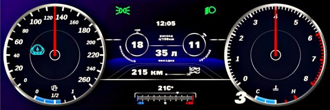 Новая панель имеет виртуальные спидометр и тахометр, а также индикаторы уровня топлива и температуры охлаждающей жидкости. Кроме того, на ней есть прочие стандартные индикаторы и табло с показаниями бортового компьютера.