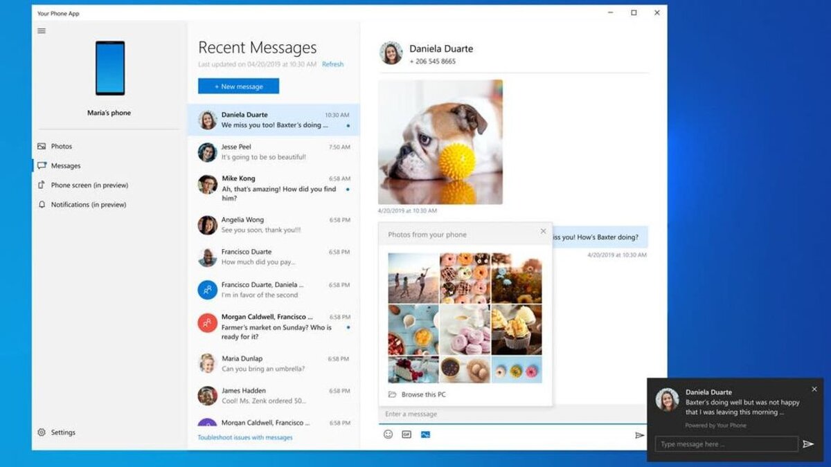 Благодаря обновлению теперь приложение от Microsoft "Your Phone" позволяет видеть свои уведомления с Android устройства и отвечать на сообщения непосредственно с Windows 10. Изначально это обновление было выпущено для Windows Insiders (Программа предварительной оценки Windows), но теперь оно доступно всем пользователям. Настроить его довольно легко: После синхронизации ваших устройств вы можете просматривать тексты, фотографии, уведомления и просматривать экран телефона, щелкая вкладки бокового меню в приложении для ПК. Push-уведомления с вашего телефона также будут отображаться, как десктопное уведомление на вашем ПК. Если понравилась статья, то ставьте лайки и подписыва