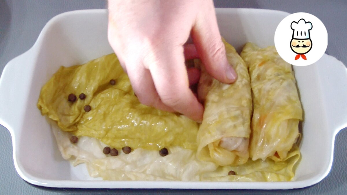 Конечно же такое блюдо можно готовить и со свежей капустой, но я, все же, рекомендую приготовить его именно с квашеной. И поверьте на слово, вы увидите очень довольные улыбки на лицах тех кто будет есть. Пошли на кухню... ПРИГОТОВЛЕНИЕ: Обжариваю ребрышки на сильном огне, до золотистого цвета. Откладываю их в сторонку. В сковороде остался жир, от ребрышек. На нем тушу морковь, которую натер на крупной терке. И лук, который нарезал четверть кольцами. Помешивая, тушу до размягчения. Следом добавляю томатную пасту и перемешиваю. Накрываю крышкой и оставляю еще пару минут тушиться. Готовые овощи выкладываю в миску. Солю, перчу и оставляю чтоб остыли. Если у вас свежая капуста, то предварительно отделяем листья и бланшируем их буквально одну минуту. Если квашеная, то готовим дальше. На лист капусты выкладываю немного тушеных овощей и ребрышко. Заворачиваю. На дно формы выкладываю несколько капустных листьев. Добавляю несколько горошин душистого перца. Поверх складываю плотно готовые "не го