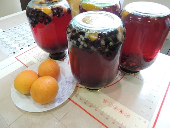 Всем привет. Компот из чёрной смородины с апельсинами на зиму - вкуснейший, яркий напиток детства. Компот - пожалуй, самый простой способ насладится вкусом и ароматом любимой ягоды зимой. В этом году не особо много вишни, яблок, малины. При этом изобилие чёрной смородины. В буквальном смысле кусты на моем приусадебном участке обсыпные. А так как компот один из самых любимых напитков моего семейства, то я по максимуму стараюсь реализовать ягоду и закатать как можно больше трёхлитровых банок. Для меня чёрная смородина чересчур насыщенная ягода и если её не разбавлять с апельсином или другим фруктом, то компот получается слишком приторным. Для приготовления одной 3х литровой банки понадобится: В первую очередь промываем и стерилизуем банки. Обязательно при этом обращаем внимания, чтобы не было сколов и трещин на банке, особенно на горлышке. Так как у меня нет специального приспособления для стерилизации банок, то я использую для этого чайник. Переворачивает чистую банку вверх дном на к