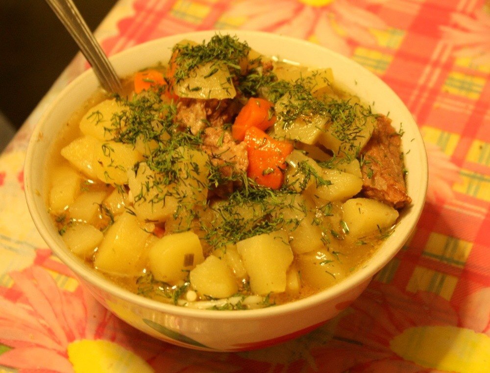 Лагман это очень вкусное и сытное блюдо. Можно найти множество рецептов по приготовлению лагмана. Я же расскажу, как его приготовить вкусно и просто, без заморочек. Чтобы приготовление не заняло много времени, рекомендую все ингредиенты сразу нашинковать кубиками примерно 1,5-2 см. и вскипятить 2 литра воды для бульона. Я шинкую это в такой последовательности: · морковь (3 шт. средние), · картофель (5-6 шт. размером как 2 куриных яйца), · мясо (говядина, но можно и курицу 300 гр.), · лук (1 шт. крупная, размером с кулак). Еще понадобится: · чеснок (2-3 зубчика) нарезать мелко, · томатная паста (2 ст. ложки), · соль (по вкусу, я добавляю 2 ст. ложки без горки), · приправа хмели-сунели (1 ч. ложку), · лапша яичная или спагетти (покупаю готовую яичную лапшу и отвариваю 3 квадратика из упаковки или спагетти из твердых сортов пшеницы ½ пачки). На дно казана налейте растительное масло, чтобы чуть покрыть дно, и отправьте обжариваться лук. Примерно через минуту выкладываем мясо и перемеши