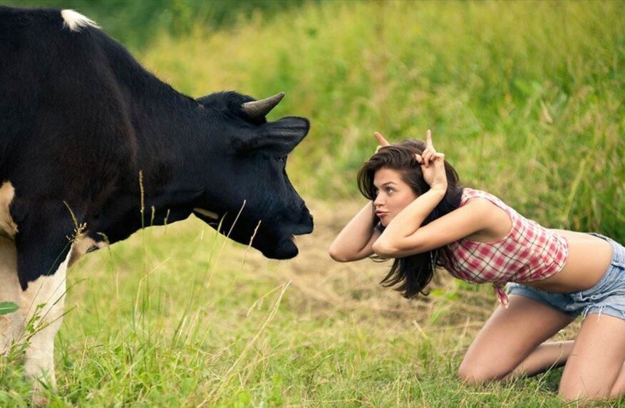 Летние каникулы в деревне. В моем подростковом возрасте еще были колхозы, совхозы и прочие коллективные организации. Многие деревенские жители держали овец, коров, коз и кур, само собой. Их не держали только дачники. Было в колхозе стадо из 20 или более коров. И бык, конечно, куда же без него. Бык это наипервейшая необходимость в стаде для производства потомства. Его так и называют – бык производитель. Каждое утро звук хлыста пастуха будил тех, кто не смог проснуться от дружного петушиного крика. Дворовые коровы паслись вместе с колхозными. На обед пригонял стадо на дойку. Нам с двоюродной сестрой было тогда по 14-15 лет. Бедовая была сестра, ничего не боялась, всюду нос свой совала, по деревьям как обезьяна лазала. Через заборы за чужими яблоками сигала впереди всех. Пацанка, одним словом. Я рядом бледной тенью выглядела. У меня всегда ко времени возвращения стада коров инстинкт самосохранения срабатывал, я уходила с улицы. Ну не люблю я рогатую скотину. А в этот раз я сплоховал