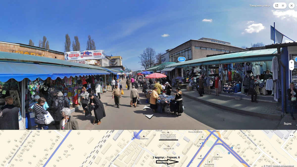 Донецкий привокзальный рынок не отличается какой-либо организованностью. Это скорее более-менее структурированный набор разномастных палаток и магазинов, хотя подобное свойственно для многих городов на постсоветском пространстве, где изначально просто не было предусмотрено места для рынков. Зато этот рынок повсюду от ж/д вокзала и вплоть до улицы Горной – целый квартал, где административные постройки, жилые дома и 2 корпуса института окружены торговыми рядами с 2-3 сторон