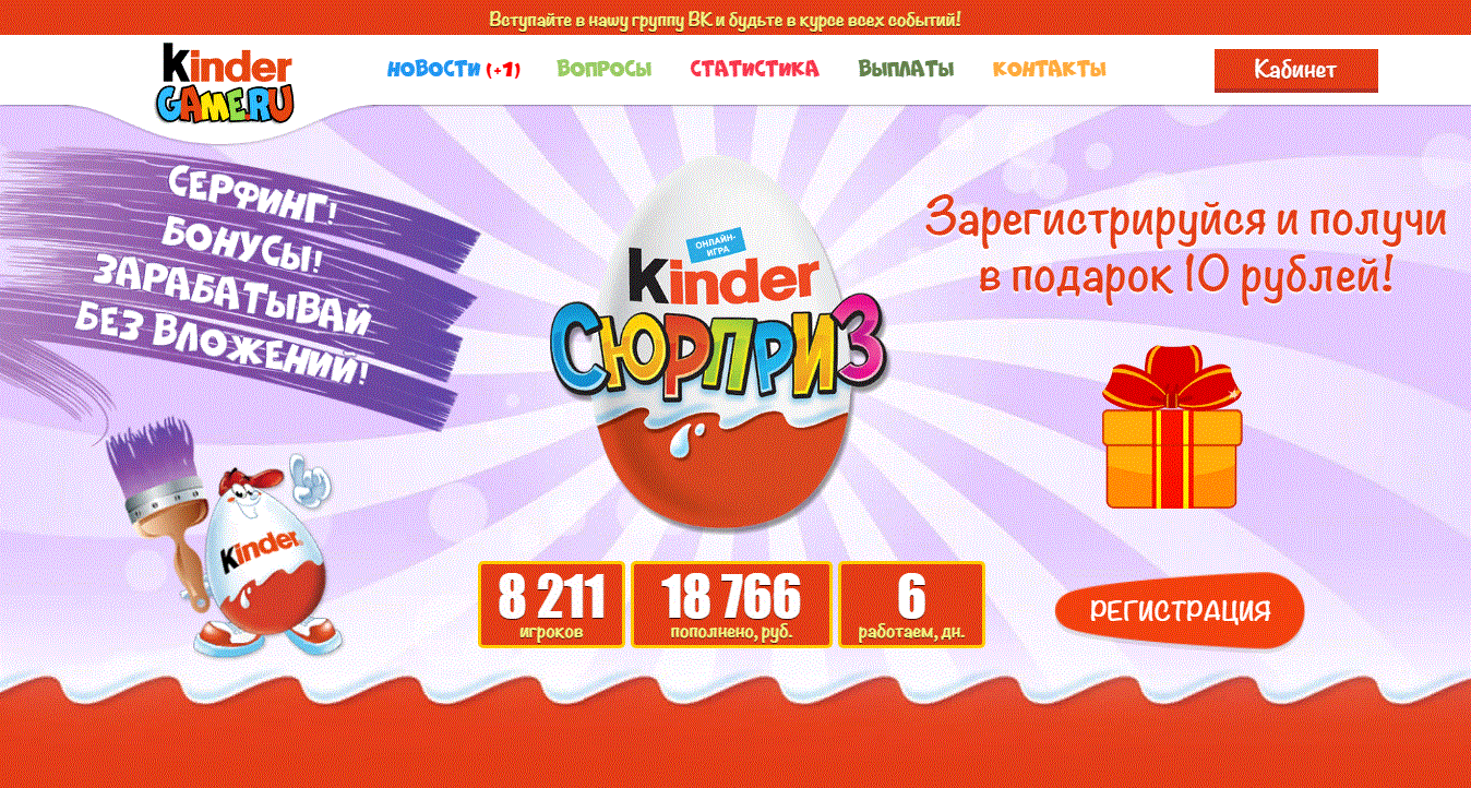 Покупайте Киндеров, и без ограничений выводите на свой кошелек прибыль, которую они будут круглосуточно Вам приносить!