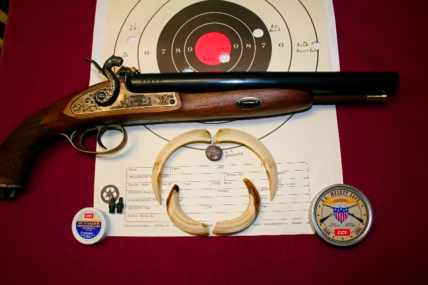 Поскольку такое оружие в принципе не рассчитано на длинные дистанции, чрезмерно увеличивать в нем навеску черного пороха бессмысленно - именно поэтому, несмотря на калибр, у него вполне комфортная отдача. В конце концов, дульнозарядные пистолеты пару веков подряд использовали не одни только богатыри с железобетонными руками, не так ли? (Пушкин подтвердил бы, но...)