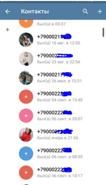 То есть, телеграмм «сожрал» нашу базу из 20к номеров и выдал нам все контакты, которые зарегистрированы в системе, попутно привязав к ним реальный аватар пользователя: (фото есть не у всех пользователей).