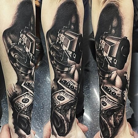 Нас часто просят сделать татуировку с чёрным пистолетом. «Братухе подгони на днюху чёрный пистолет», Ноггано. Делаются в реализме, графике, блэк-энд-грэй. Пистолеты берут любые — от револьвера до «Вальтера».