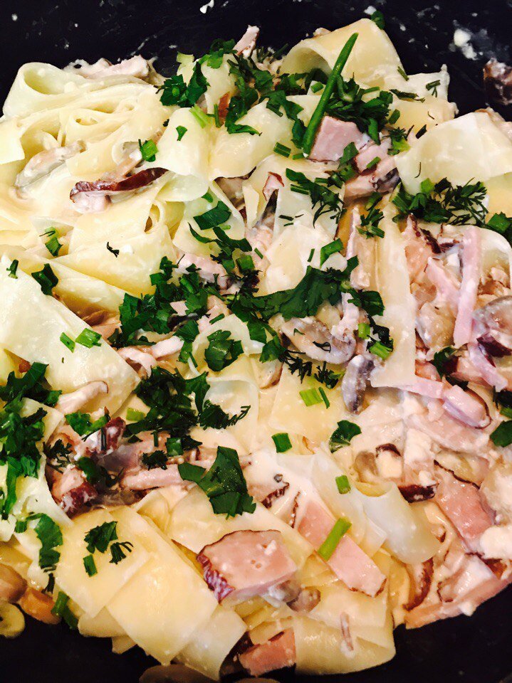 Чтобы приготовить вкусное блюдо, требуется не всегда много усилий. У нас на канале и на сайте как раз простые и быстрые рецепты собраны. И сегодня будем готовить пасту с беконом и ветчиной. Ингредиенты Как приготовить пасту с беконом и ветчиной Для начала режем бекон кубиками, а ветчину полосками. Затем прогреваем сковороду на среднем огне и добавляем ветчину с беконом. Обжариваем до получения золотистой корочки и добавляем сливки. Обжариваем в течение 2-х минут, убавляем огонь до минимума и обжариваем еще в течение 2-х минут. Добавляем заранее отваренные макаронные изделия. Удивительно аппетитный рецепт готов. В итоге получаем очень приятный и сытный обед или ужин, которым с легкостью можно накормить всю семью. Паста понравится и взрослым, и детям.