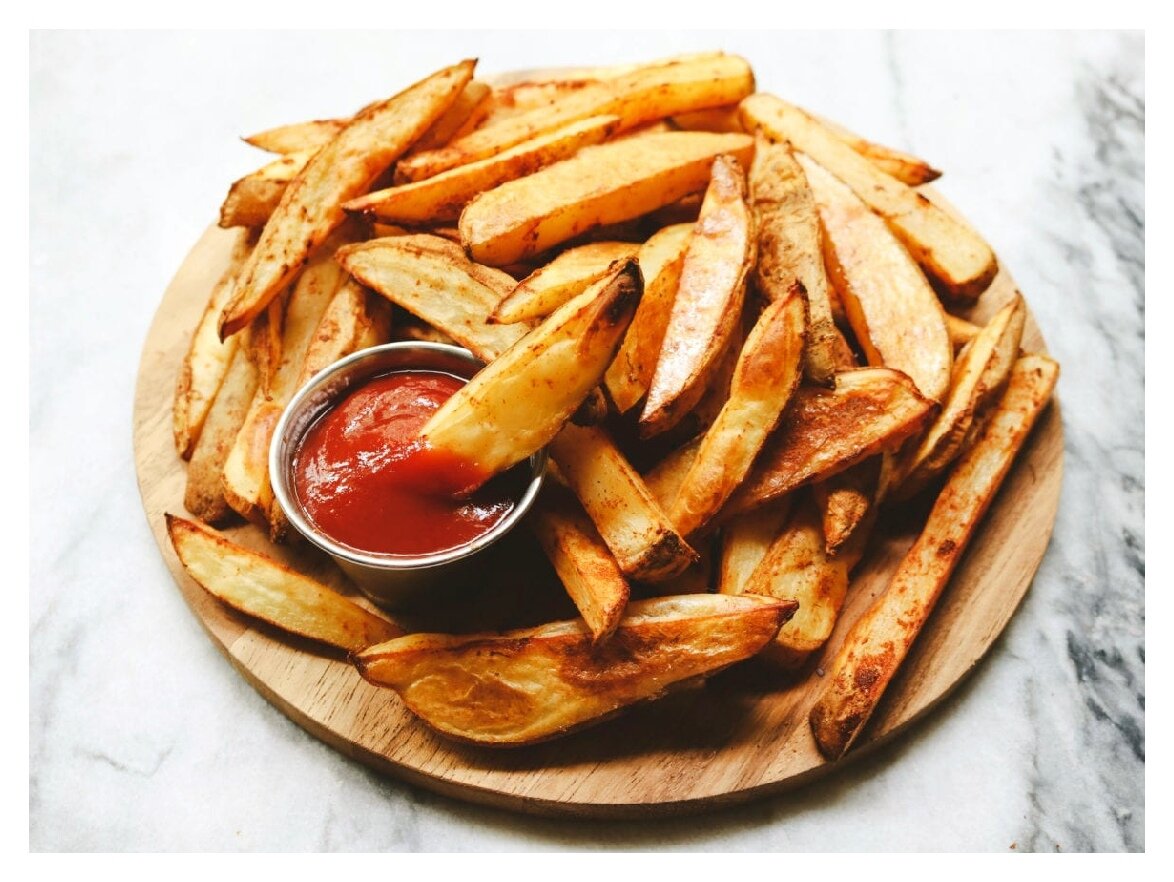 На этот раз мы попробуем повторять рецепт картофеля по-деревенски из McDonald’s. Необходимые ингредиенты: 8 шагов по приготовлению: #1 Моем картофель, т.к он молодой, чистить его не нужно(это нужно, для того, чтобы получилась корочка, как у оригинального продукта) #2 Режем картофель, на 8 частей, так чтобы получились по размеру, такими же, как и оригинальный продукт. #3 Возьмём тару и смешаем в ней: соль, масло, перец, карри и орегано. Теперь нужно всё размешать. #4 В полученную массу окунаем каждый кусочек, чтобы он полностью пропитался в нашей приправе. #5 Далее разогреваем духовку до 180℃. #6 Берём протвинь, аккуратно выкладываем на него наши кусочки. #7 Запечём картофель в течение 20 минут. #8 Доводим температуру до 200-220℃ и запекаем ещё 30 минут. Энергетическая ценность на 1 порцию: Картофель готов, можем подать к столу. В виде соуса можем использовать ранее упомянутые соусы Хайнц. Любишь повторять рецепты фаст-фуда? А попробуй повторить эти крылья или картошку-фри.
