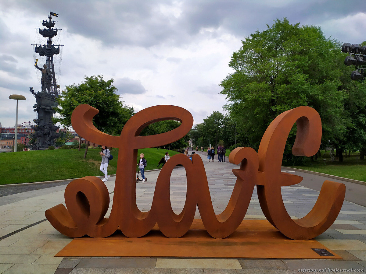 Вчера обнаружила в Музеоне вот такой объект. Видимо установили несколько дней назад, на прошлой неделе гуляла там, скульптуры еще не было. В витиеватых буквах угадывается слово LOVE. Но если посмотреть с другой стороны...