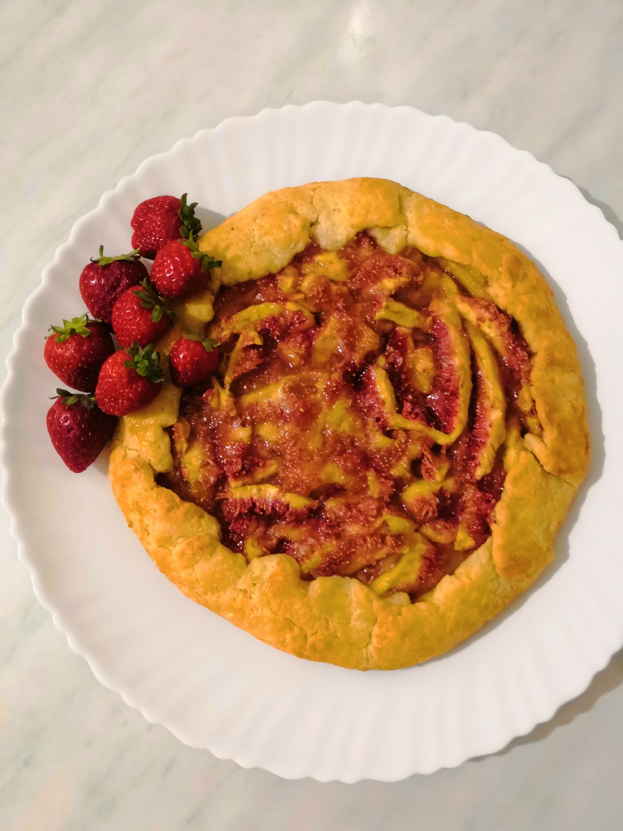 Этот пирог занимает мало времени в приготовлении и получается очень нежным. В качестве основы у нас будет творожное песочное тесто, а в начинку вы можете добавлять любые фрукты и ягоды на ваш вкус. Ингредиенты: -творог 150г; -мука 180г; -масло сливочное 100г; -сахар 3ст.л.; -2 желтка; Для начинки: -инжир 6шт; -сахар 3ст.л; -мука 1ст.л; Сливочное масло и творог (обязательно должны быть охлажденными) рубим ножом вместе с мукой и сахаром. У вас должна получится рассыпчатая крошка, можно сделать это при помощи комбайн. Главное делать это очень быстро пока масло остаётся холодным. Формируем шар и заворачиваем в пищевую плёнку, немного приплюснув его убираем в морозилку на 15-20минут (если времени у вас много тогда уберите в холодильник минимум на 30-40 минут). Пока тесто охлаждается подготавливаем фрукты. Очищаем и нарезаем инжир. Смешиваем его с мукой и сахаром. Через 20 минут достаем тесто с морозилки и раскатываем его на присыпанном мукой пергаменте. Толщина теста должна примерно 0,5 см.