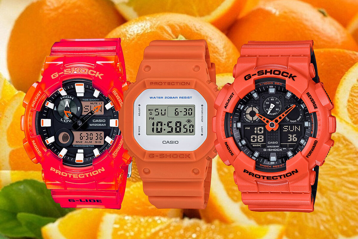 Подборка оранжевых часов G-Shock разных ценовых категорий. Чтобы вы понимали, Casio-вцы каждый месяц обновляют цвет уже существующих корпусов [следите за нашими новостями]. Некоторые стили появляются только в избранных странах, поэтому не всегда правильно их показывать [или редкие лимитированные издания]. Мы подобрали только популярные и продаваемые варианты. В подборке могут часы как с оранжевым корпусом, так и оранжевым ремешком или циферблатом.