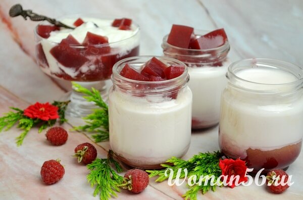 Домашний йогурт с малиновым желе! Очень вкусно! Много фото!!!