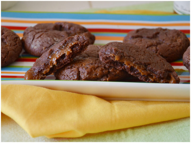 Печенье с карамелью безумно вкусное лакомство. Тесто, шоколад и карамель, к которой мы добавим немного соли, чтобы сделать контрастность вкуса, приятно сочетаются и дают незабываемый вкус. На 20 печений нам понадобится: 50 гр шоколада 50 гр сливочного масла 150 гр коричневого сахара 1 яйцо 25 гр какао 150 гр муки 1 ч ложка разрыхлителя 50 гр карамели соль Растопите шоколад со сливочным маслом. Добавьте какао и сахар, все тщательно перемешайте. Затем добавьте яйцо, перемешайте до однородности, добавьте муку и разрыхлитель. Вымесите тесто, оно должно получится гладким. Закройте тесто пищевой пленкой и положите в холодильник примерно на 30 минут. Как только тесто остынет, сформируйте из теста маленькие шарики размером с грецкий орех. Сплющите и положите в центр пол чайной ложки карамели с щепоткой соли. Сложите края и сформируйте печенье. Выложите его на противень, покрытый бумагой для выпечки и отправьте в духовку, разогретую до 180 гр примерно на 10 минут. Дайте печенью остыть перед по