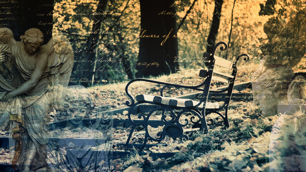 На скамейке старинной в саду,