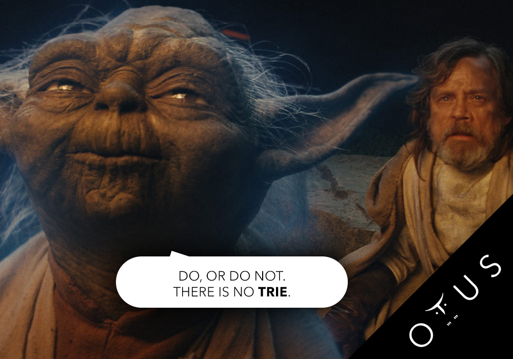 И хотя ассоциативный массив гораздо лучше, чем обычный массив или список, он всё же не оптимально распоряжается ресурсами: каждый ключ — это один из возможных префиксов, и некоторые префиксы могут быть вложены друг в друга, как матрешка (“f” и “foo”, “b” и “ba”): это можно использовать для оптимизации хранения данных.