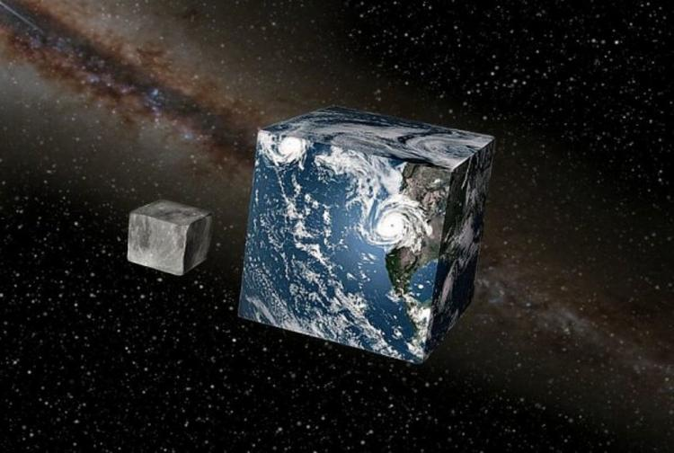 Сила тяжести будет направлена перпендикулярно направлению лишь в центр грани, а остальные места окажутся под углом, нам будет казаться, что мы на горе. Угол на вершине «горы» будет составлять 50°. Чтобы масса и объём куба были как у шарообразной Земли, то длина куба должна составлять 10300 км. Если мы решим путешествовать от центра грани до вершины куба, то мы заберёмся на гору высотой 3 700 км, а это гораздо выше Эвереста. Грань будет представлять чашу, окруженную горами, но визуально это будет плоская поверхность. Вся вода планеты будет стекать в центр граней, таким образом на Земле окажется 6 океанов, несоединимых между собой. Поверхность океана будет выпуклая, а глубина составит 300 км, что в 27 раз глубже Марианской впадины. А диаметр океана будет исчисляться в 4000 км. Жить мы сможем только в узкой прибрежной полосе, составляющей 16 км. Газ же, как и вода, принимает любую форму, следовательно, атмосфера разобьётся на 6 частей у каждого океана. Но несмотря на это, всё население