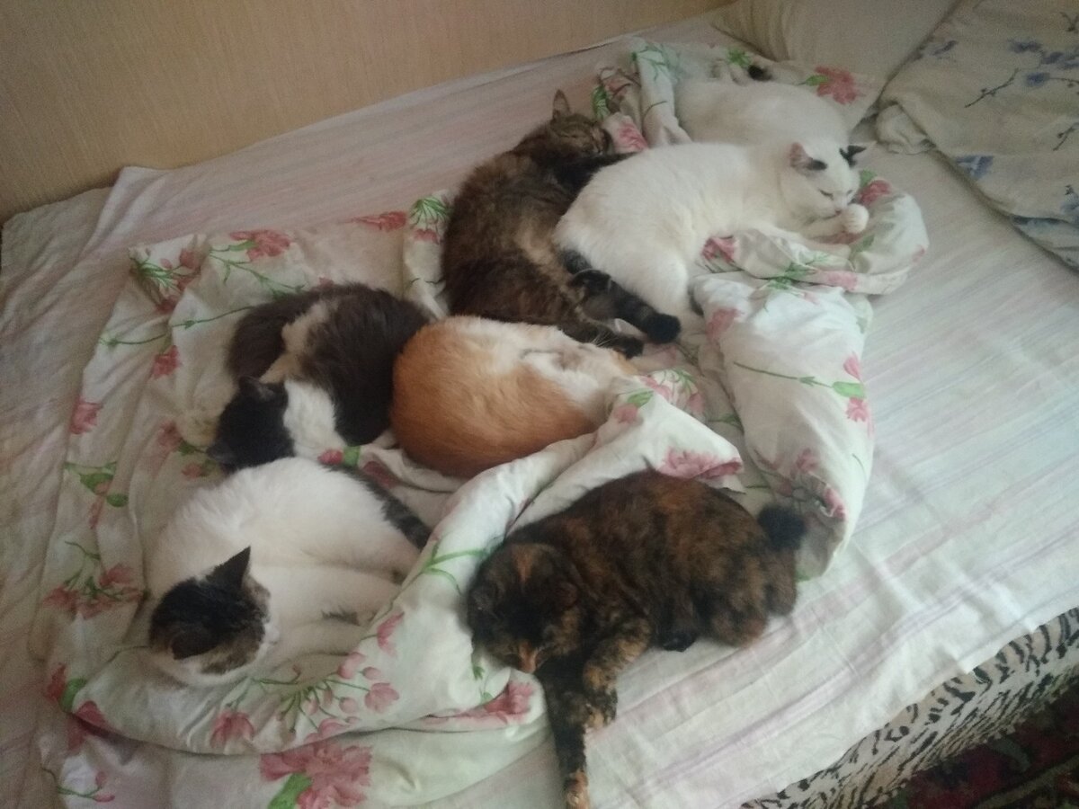 Читатели наши частенько спрашивают: "Как Людмила Ч. справляется с такой оравой? Как у нее получается так, что все животные у нее чистенькие и ухоженные? В доме и во дворе чистота?" Сказать сложно... Наверное есть какой-то секрет?! А может все гораздо проще и достаточно просто искренне любить животных? Тогда оно получается все само собой, когда идет от души, от сердца... Каждый день приюта начинается с того, что рано с утра хозяйка встала и уже готовит не одну кастрюлю для своих подопечных. А у них есть еще часик-другой чтобы поспать, понежится в не засланной кроватке мамы!)) Потом начинается завтрак, большой завтрак для всех. Котам и собакам готовится все отдельно. В приюте царит атмосфера спокойствия, гармонии и доброты...Ну по крайней мере пока все заняты едой! Строит всех конечно же бандитка Гуля, с уже известного вам ОПГ: Сельские питомцы: улыбайтесь вместе с нами!))) Дружеская атмосфера везде и во всем, как дома, так и на улице. Животные даже кушают с одной тарелки, как вы видите