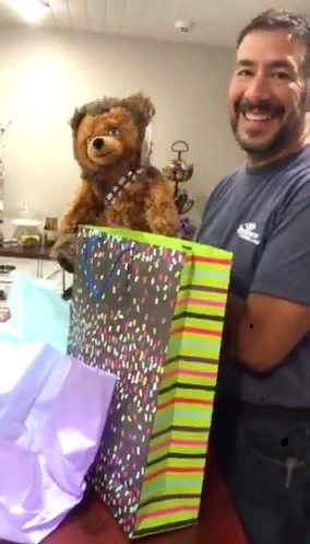 Дочка подарила своему отцу обычного мишку, который сообщил ему, что он будет дедушкой. Реакция отца