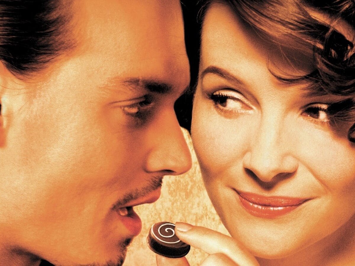 Сегодня Всемирный день шоколада, думаю, вы уже догадались, о каком фильме пойдёт речь. Конечно, это «Шоколад» Лассе Халльстрёма. По сюжету фильма в маленький французский городок приезжает девушка Виенн, и открывает кондитерскую. Сначала местные жители встречают ее настороженно, но в конце концов, шоколад растопит их сердца. Не будем заострять внимание на отношениях главных героев, которых играет Жюльет Бинош и Джонни Депп. Мне кажется, этот фильм всеми уже до дыр засмотрен. Давайте лучше остановимся на шоколаде. В кино, если режиссёр хочет показать еду в привлекательном контексте, в первую очередь съёмочная группа подробно прорабатывает световое решение таких сцен. Используется мягкий, рассеянный свет, еда не должна быть в тени. В «Шоколаде», это кондитерское изделие становится центром внимания и главным сюжетным объектом, поэтому, несмотря на приглушённые тона, на шоколаде всегда много света. А ещё для подготовки к роли Виенн Жюльет Бинош наблюдала за приготовлением сладостей в нас