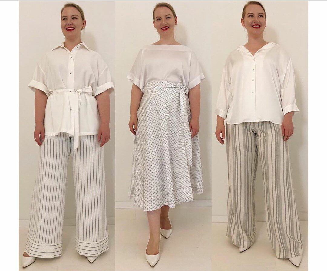 Примеры, как одеваться; корректирующие техники для дам с пышными формами. Магазины одежды для дам размера «плюс» обычно грешат абсолютно не стильным и даже «вредным» для фигуры ассортиментом: нелепые принты, мешковатый крой, неуместные ткани, которые только демонстрируют все недостатки фигуры. Все это выглядит старомодно, искажает пропорции тела и абсолютно не украшает. Как же научиться одеваться так, чтобы выглядеть стройной, красивой и показывать лишь достоинства своих красивых форм? Собрали для вас 4 актуальных совета, которые обязательно стоит применить. Попробуйте использовать монохромные сочетания в одежде. Это такие комплекты, которые состоят из вещей одного цвета или различных оттенков одного и того же цвета. Дополнительно к ним можно добавить вертикальные принты (самый простой вариант – полоски), чтобы визуально вытянуть силуэт. Так вы будете казаться немного выше и стройнее. Вертикальные линии – это основная хитрость для всех, кто хочет казаться стройнее и вытянуть фигуру. Ве