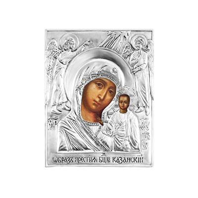 Наверное самой известной иконой Богородицы на Русской земле является «Казанская» икона Божьей Матери. Икона Божией Матери Казанская в окладе малая К молитве перед этим образом Божией Матери прибегают в самых разных нуждах и печалях, и Она всегда приходит на помощь. Этой иконой традиционно благословляют молодых к венцу.