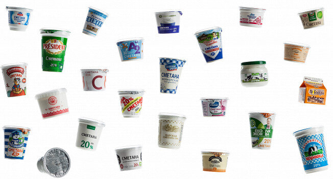 Мы решили разобраться в том разнообразии 20%-ной (и около того) сметаны, которое продается в московских магазинах, и понять, на чем все-таки строятся эти нежные чувства. Для этого купили 25 банок сметаны (одна из них оказалась сметанным продуктом) и все их перепробовали.