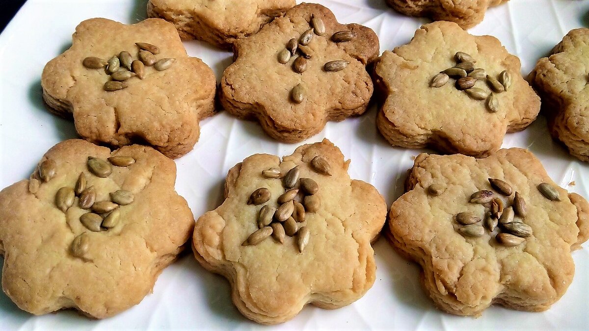 Добрый день! В одном их моих постов читатели увидели на фото печенье, которое я пеку сама. Попросили рецепт. Раздразнила. Обычно замешиваю любое тесто на глазок, так как пеку уже очень давно и руки сами "помнят". Но сегодня специально с утра испекла печенье, чтобы поточнее дать рецепт вам, дорогие читатели. А он очень прост. Наверняка многие так же и пекут. Всего 3 составляющих в нём: Маргарин(слив. масло) - пачка 180-200 гр. Сахарный песок - 0, 5 стакана Мука пшеничная - около 3-х стаканов. Всё! Растопите маргарин. Всыпьте в него сахарный песок, размешайте хорошенько. Добавьте муки и замесите тесто консистенцией как мягкий пластилин. Раскатайте тесто на лепёшку, толщиной 1, 5 см(приблизительно). Пользуясь формой, выдавите печенье и выложите его на смазанный раст. маслом лист. По желанию добавьте на печенье семечки(орешки, мак), слегка придавив чтобы не осыпалось. Выпекайте в разогретой духовке при 180 гр. до зарумянивания (около 15 мин) Выкладывайте на красивую тарелку, ставьте чай