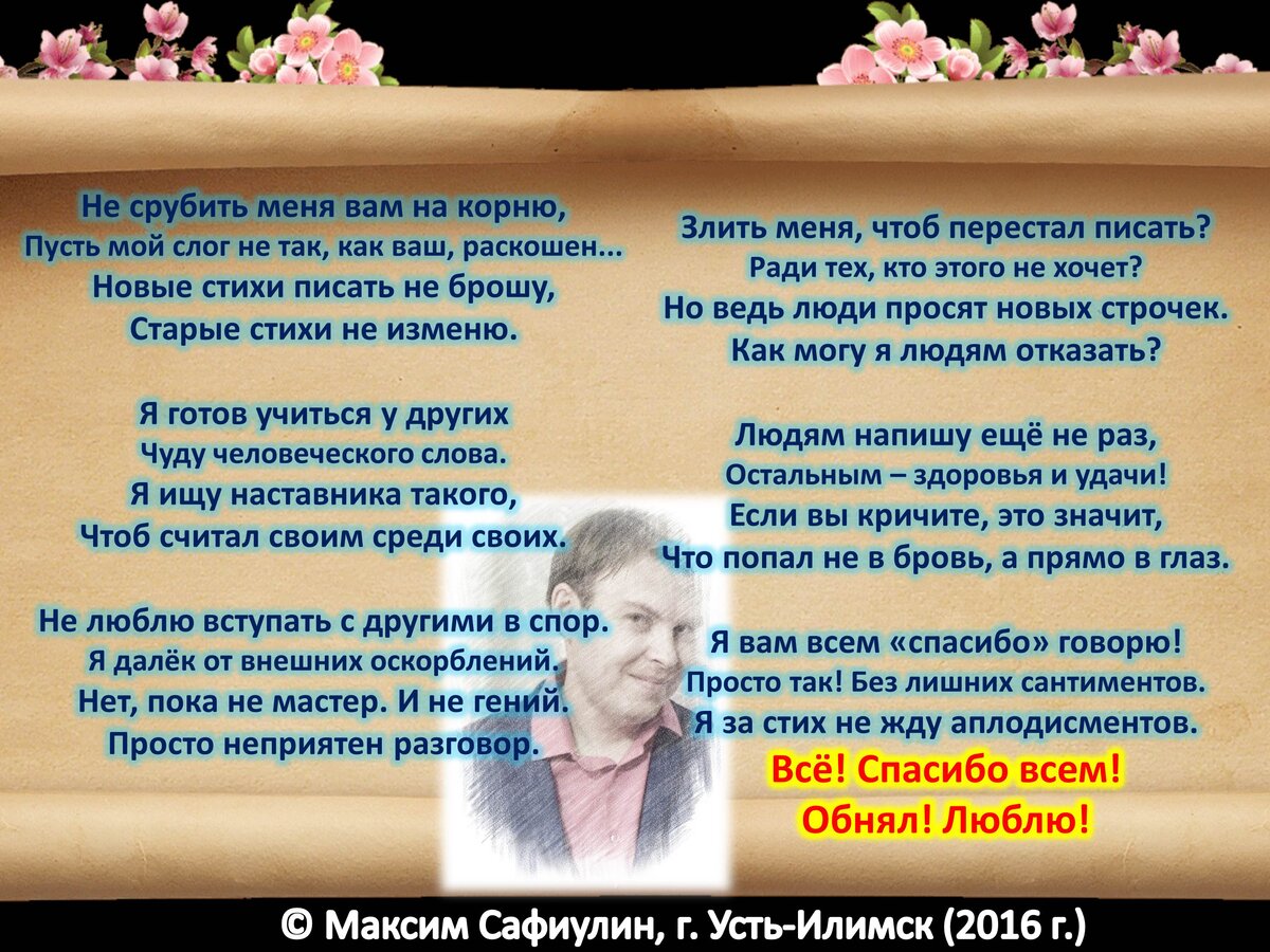 Всё! Спасибо всем! Обнял! Люблю! © Copyright: Максим Сафиулин, 2016