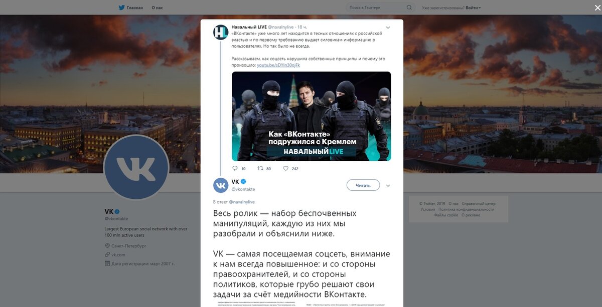 Администрация социальной сети «ВКонтакте» в Твиттере ответила на обвинения, которые были представлены в ролике Алексея Навального и его команды. Там утверждается, что социальная сеть якобы сдружилась с Кремлём после ухода Павла Дурова из компании.
