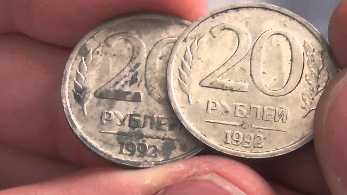 В 1992 году монетные дворы стали чеканить новую ходячку. Стране требовались денежные знаки, поэтому новые монеты были отчеканены огромными тиражными эмиссиями. В тех же годах банк эмитент выпустил принципиально новую монету номиналом в 20 рублей. Помните такие монеты? У многих они остались еще с тех времен. Так как тиражи были массовыми, то и стоят такие монеты сейчас копейки. Исключения составляют отклонения от нормы - брак и разновидности по заготовкам. В 1992 году двадцатирублевые монеты чеканили и на Московском, и на Ленинградском монетном дворе, материал заготовок использовали немагнитный, а точнее все заготовки состояли из медно-никелевого сплава. Двадцатки 1992 года не обладают магнитными свойствами, это очень важно (медно-никель не пристает к магниту). А вот двадцатирублевые номиналы в 1993 году чеканил только Московский монетный двор. В том же году материал монет изменили. С медно-никеля перешли на сталь, плакированную мельхиором. Это было связано в связи с удешевлением прои