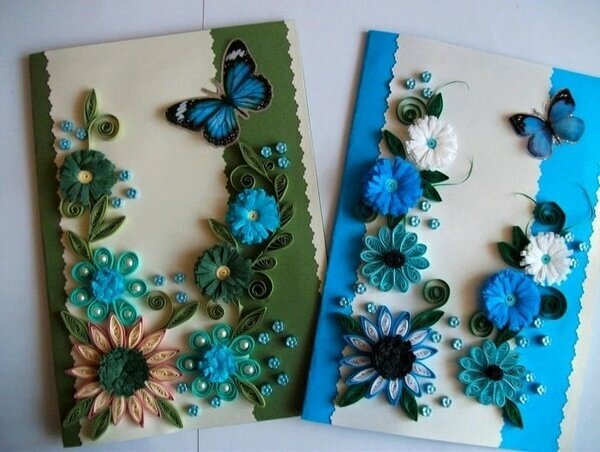 Для украшения — камни, ткань, ленты, бисер, сухие растения. Также попробуйте задекорировать открытку объемными цветами из бумаги или элементами, сделанными в технике квиллинг. Для открытки с объемными цветами понадобится: Итак: