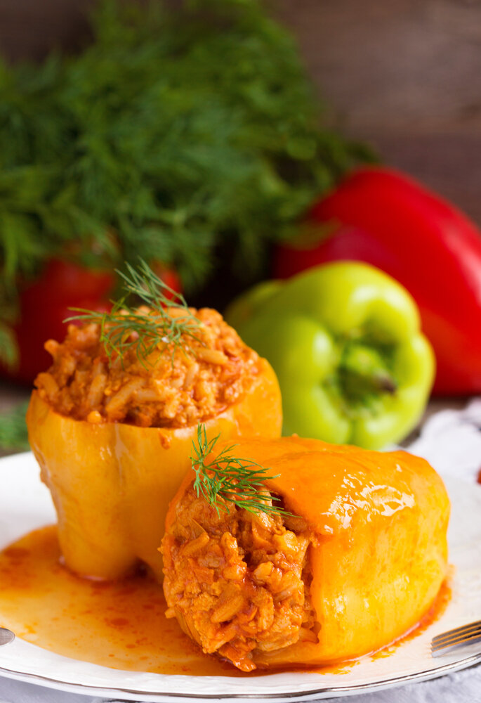 3. Болгарский перец промыть, вырезать семена, наполнить фаршем.