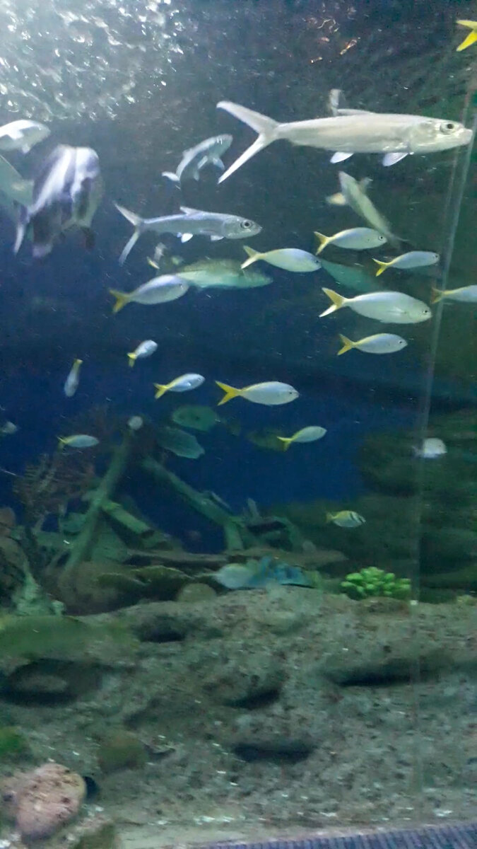 Самое яркое и запоминающееся было кормление рыбок из бутылочек, которыми кормят младенцев. В бутылке разбавляют сухой корм и продают смесь туристам. Рыбки стайкой, отталкивая друг друга пытаются заглотнуть соску. Это очень забавное и милое зрелище. В океанариуме много видов морских жителей. Для меня наиболее впечатляющими были акулы и скаты, которых моя дочь называла "блинчиками". Были небольшие "блинчики" и огромные "блинчики". Большая коллекция медуз, представленная в этом океанариуме. смотрится красиво, потому что работает подсветка. Так как океанариум не большой, мы его обошли дважды и довольн