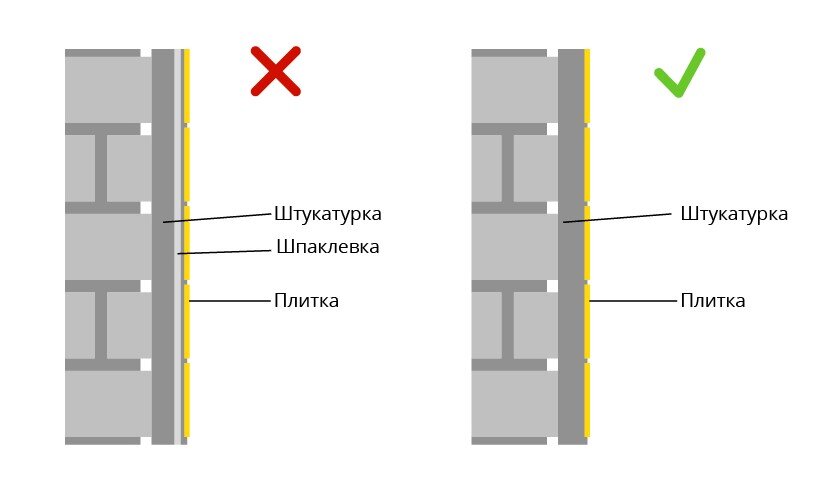 Шпаклевку любят мазать там, где требуется, и там, где это совершенно не нужно. Для примера можно привести шпаклевание под плитку. В этом случае можно обойтись штукатуркой.
