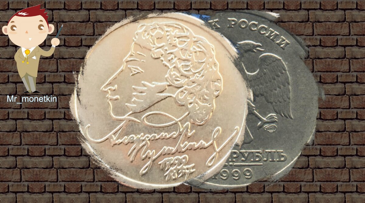 дуРубль чеканится в России с 1997 года, сейчас это одна из самых популярных мелких монет современной России: все, что напечатано 22 года назад, сохраняется для совершения платежей. Линейка цен на рубли рассмотрена в другой статье канала Mr_monetkin, редкие рубли '01, '02, '03, рассмотрены ранее, рубли 2014 (графическое изображение рубля) и 2001 (СНГ) - в статье ранее, а о первом рубле РФ 1997 года - в отдельной статье канала. В этой статье рассмотрим нередкие рубли 1999 года и рубль с А.С. Пушкиным, а также его разновидности. Безусловно, обычный рубль 1999 года редким не является, однако коллекционеры-собиратели монет по годам готовы выложить хорошие суммы за рубль, не бывший в "употреблении", тот, который не выходил за рамки банковского мешка или капсулы, в которую он попал сразу после чекана. За такой, вроде бы обычный рублик, они готовы отдать по 500 рублей: Как мы видим, рубль 1999 не является большой редкостью, но и за номинал его не купишь, ведь чаще попадаются в руки монеты друг