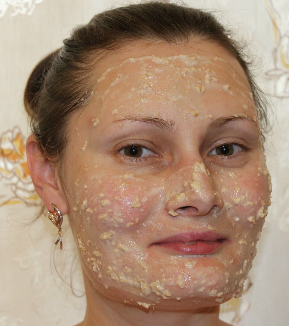 Друзья, после того, как вы все хорошо размешали, дайте масочке постоять ещё одну, две минутки. Наносить маску нужно тонким слоем на лицо и на шею. Я сегодня буду наносить только на лицо, на шею я вчера делала маску. Процедура я проделываю в ванной комнате. Так как мне нравится наносить все масочки руками. Друзья, вот так вот маска выглядит на лице.