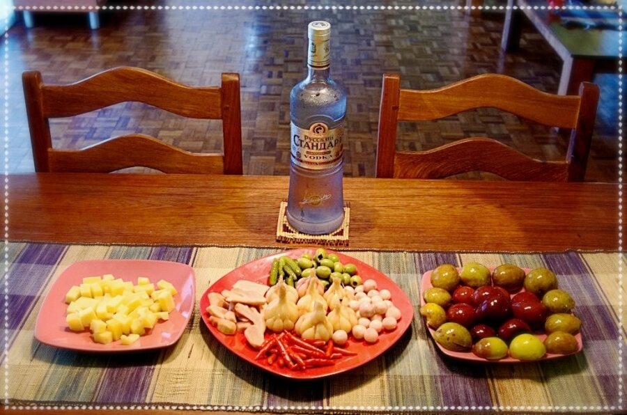 Из закусона на фотографии только оливки и сыр покупные - остальное самодельное.