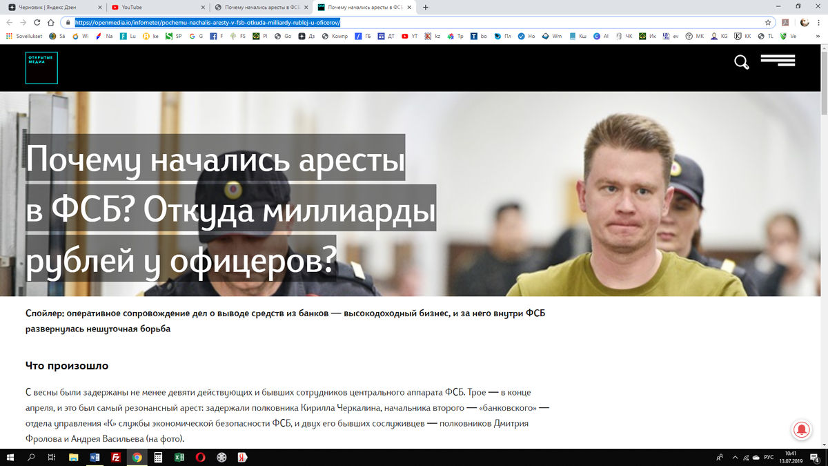 "Открытые медиа" опубликовали статью, рассказывающую о мафии в ФСБ, зарабатывающей на вымогательстве у банкиров и рынке обналичивания.
