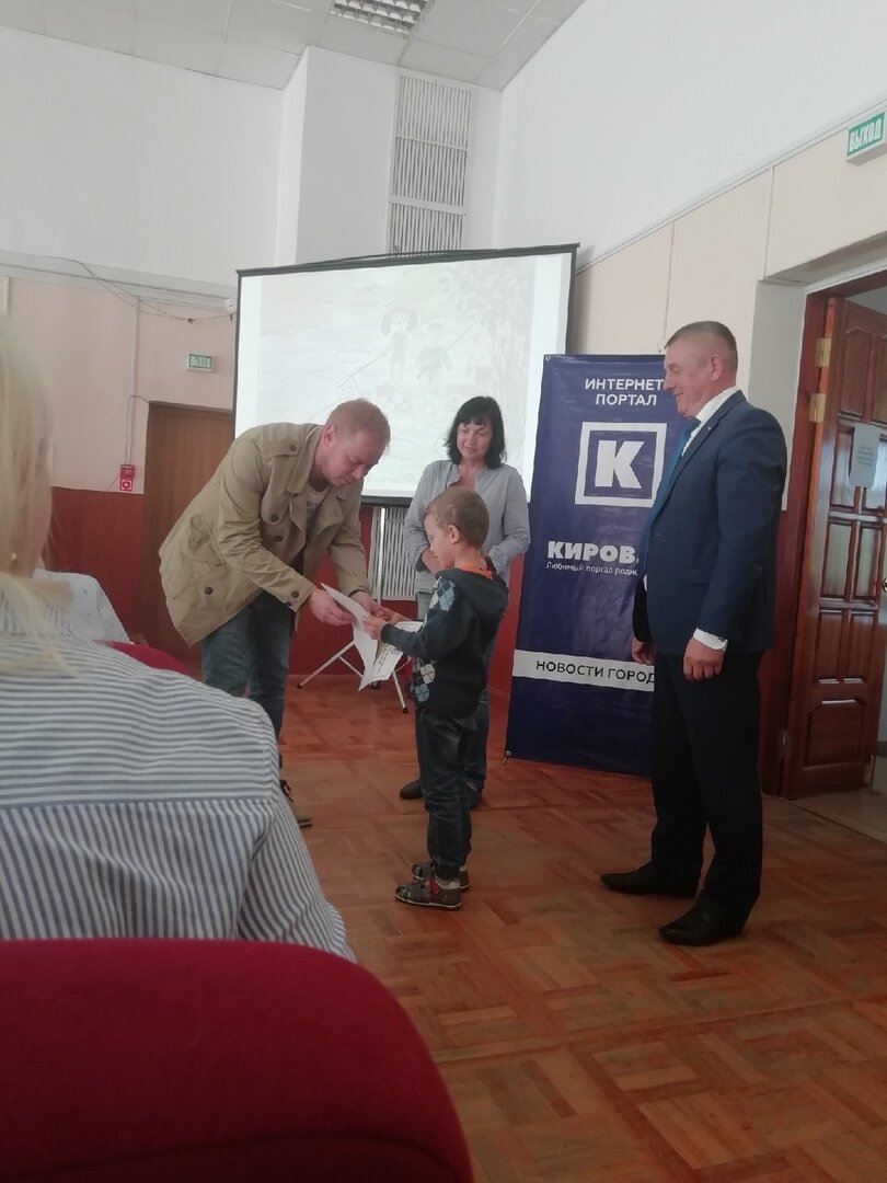 В Нововятском районе подвели итоги второго этапа городского конкурса детских рисунков, посвященного 645-летию города Кирова и летнему сезону-2019 В администрации района прошло награждение дошколят - победителей и призеров нашего конкурса. С поздравительными словами к детям и их родителям обратились заместитель главы администрации города Кирова, начальник территориального управления по Нововятскому району Геннадий Плехов, председатель Союза журналистов Кировской области Елена Урматская и главный редактор информационного интернет-портала Киров.ru Александр Петелин: - Ребята, спасибо за творчество, за вашу любовь к родному городу, которые мы увидели в работах! Каждый из представленных рисунков — это маленький мир нашего края. Он наполнен природной красотой, очень радостный и сказочный. Вы все - большие молодцы! Среди более 50 работ, присланных в оргкомитет конкурса, жюри выбрало 7 победителей и ещё трех определило народное голосование в нашей группе. Юных художников наградили благода