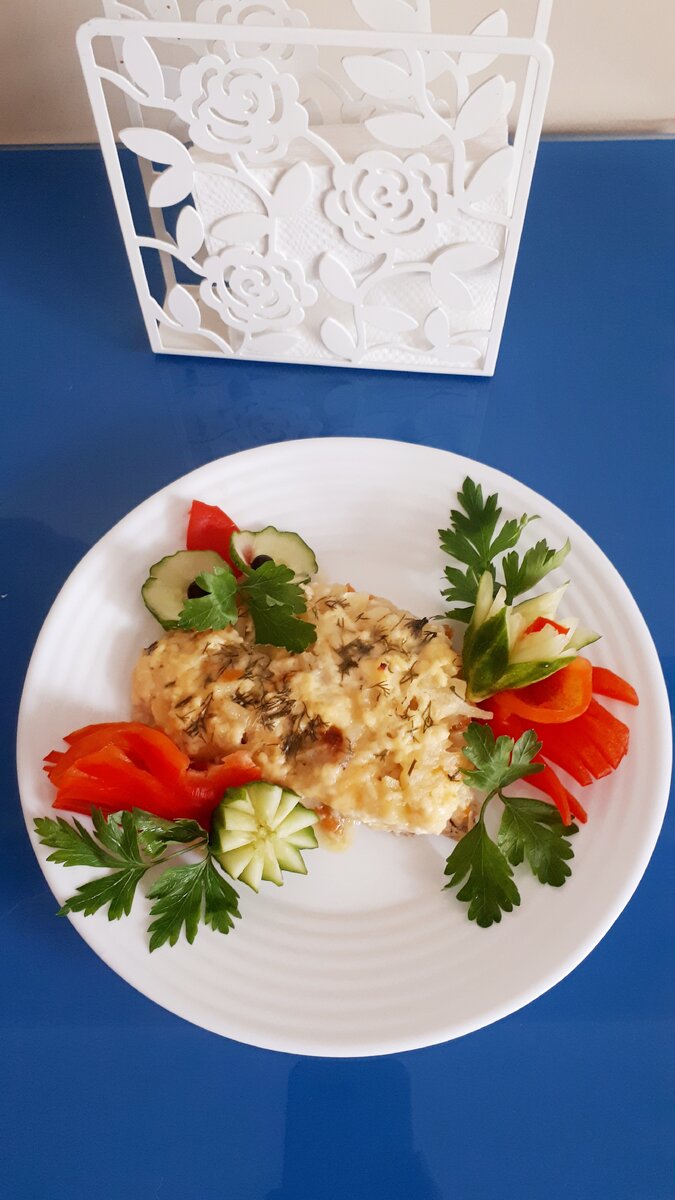 Блюда, приготовленные для членов семьи или приглашенных гостей и украшенные с любовью, приобретут дополнительную изысканность, подчеркнут ваше старание сделать их еще более вкусными нарядными. Вкусно приготовленное и красиво оформленное блюдо приятно подавать гостям на стол. Для приготовления вам потребуются такие продукты: рыба, мокровь, лук, картофель, яблоко, сыр, сахар, соль, специи, сметана или майонез, молоко, мука, масло сливочное, лимон. Для запекания я купила рыбу путасу, почистила, вырезала чистое филе, поперчила, посолила и выдавила на рыбу сок лимона. На протвень (протвень должен быть высотой не менее 5-7 см.) налила масло растительное и укладывала рыбу, а на рыбу намазала сметану ( можно майонез). Рыба на протвене - это первый слой. Протвень в духовку не ставим, пока не уложим все слои. Почистила картошку, лук, морковь и залила холодной водой, чтобы вышли нитраты. Через 15 минут начинаю жарить лук, добавляю морковь. Пока жарится лук с морковью, нарезаю соломкой половинку