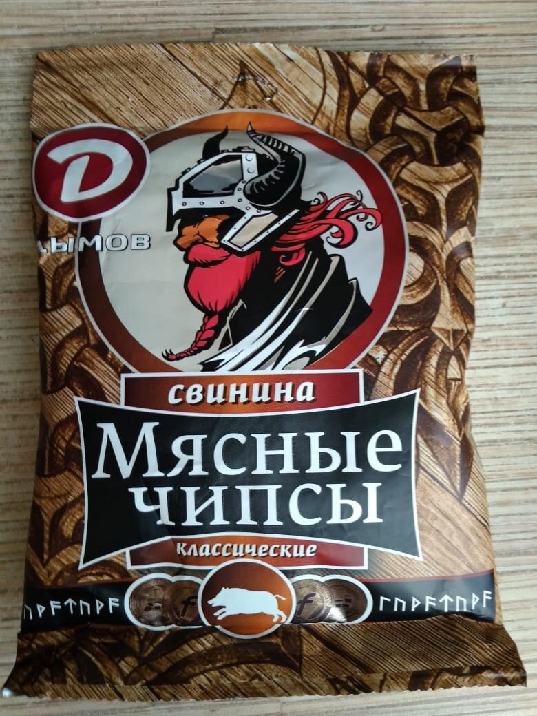 Сейчас в магазинах есть все: черный бургер, черное печенье, крафтовые снеки и прочие "штуковины", которые поражают и видом и названием. Не так давно я познакомился с таким видом снеков, как мясные чипсы. В первый раз я купил мясные чипсы в "Магнит" и они мне не понравились! Это не чипсы, а колбаса! Но я не стал сразу ставить "крест" на мясных чипсах и попробовал чипсы из "Красного и белого". Тем более, там есть 3 вида: из говядины, из свинины и из индейки. Цена за пачку 59,99 рублей. В первый раз я купил свиные чипсы. Сегодня мой обзор именно и них. Мясные чипсы изготовлены маркой "ДЫМОВ". Масса пачки 25 грамм. Цена за 1 кг равна 2400 рублей! (сам в шоке). В составе: свинина, фиксатор окраски, специи, усилитель вкуса. Срок годности 4 месяца, хотя я ожидал, что будет около 1 года. Внутри около 20-25 чипсов. Чиспы выглядят как сухие нарезанные куски мяса. Обычно чипсы-это жареный продукт, НО ЭТИ СУШЕНЫЕ. Чи́псы (chip — тонкий кусочек) — закуска, представляющая собой тонкие ломтики кар
