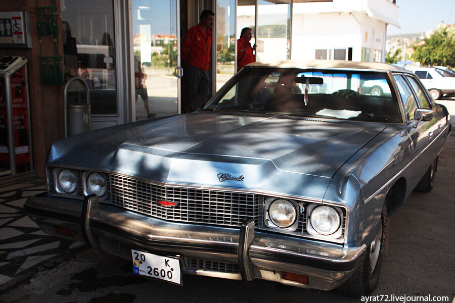 Что ждет в Турции человека за рулем? Если кратко, то приличные дороги и неприличные цены на топливо. Автотрассы провинции Мугла хорошего и отличного качества. Больших изъянов на дорогах не встретишь. Поступлений в казну города Мармариса от туризма хватило на то, чтобы одеть все городские в брусчатку. Сделать раз и навсегда, и не тратиться на постоянные ремонты асфальтового покрытия. Сейсмичность, почти не заметная для людей, но достаточная для разрушения асфальта, творила свое коварное деяние. Автомобиль на заглавной фотографии не является широко распространенным явлением, скорее это исключение. Я не заметил широкого увлечения ретромобилями. Основная же масса автопарка представлена европейскими автомобилями. Японских гораздо меньше, из азиатских больше последних встречаются корейцы. В связи с высокими ценами на топливо распространены машины малого и среднего класса. На фотографии сразу два немца. Они несомненно присутствуют, но все же в глаза бросается явное преимущество французов. Ос