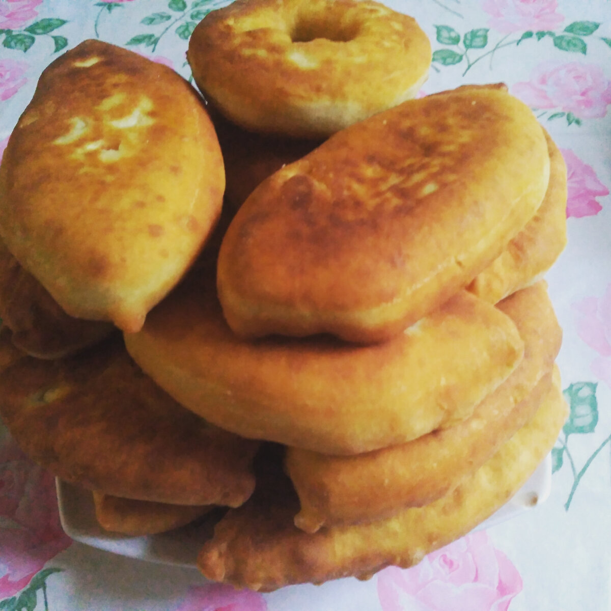 Вот такая горка пирожков получилась. Бонусом к пирожкам стал пончик, который внучка и съела первым.