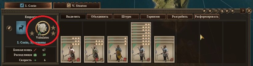 Вторая механика - поле битвы. От местности, на которой произойдёт сражение, зависит очень много. Мало того, что местность может добавить защитный бонус к рейтингам отрядов вашей армии, так от неё ещё зависит протяжённость передовой линии, на которой будет проходить сражение. Войска всегда выстраиваются так, что сперва занимают эту передовую линию и лишь затем выстраиваются в линию поддержки. В центре размещаются самые сильные отряды ближнего боя, и если вам не хватает их, чтобы заполнить всю линию, то она будет заполнена застрельщиками или лучниками, которые почти наверняка проиграют в ближнем бою. Узнать местность, на которой произойдёт запланированное вами сражение, и протяжённость передней линии, можно на панели региона слева в одном из кружков (смотрите на скриншоте). Самым хорошим вариантом было бы иметь армию, которая займёт всю переднюю линию специалистами ближнего боя и при этом каждому такому отряду даст хотя бы по застрельщику, чтобы увеличить их рейтинги во время дуэлей. Помимо протяжённости, местность может накладывать ограничения на некоторые типы отрядов (например леса, пустыни, горы накладывают штрафы на тяжёлые подразделения), а также давать бонусы отрядам, спеиализирующимяся на этой местности. Тип местности можно узнать там же, где и протяжённость линии.