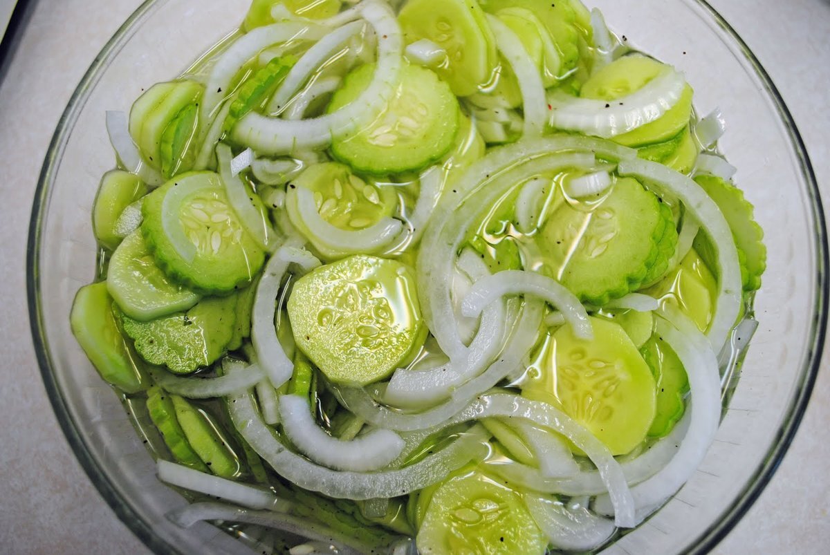Этот вариант наиболее сильно напоминает магазинный продукт по своему вкусу, однако он не в пример более полезный. Ингредиенты: Заходите на мой сайт и читайте ещё больше новых рецептов Приготовление салата Огурцы помыть, а затем нарезать на кружочками. Лук почистить и порезать полукольцами. При желании можно добавить чеснока для пикантности. Лук и огурцы выложить в кастрюлю, добавить соль и сахар. Все залить уксусом и перемешать. Огурцы мариновать не меньше 12 часов в прохладном месте. Банки тщательно простерилизовать, а после разложить по ним салат. За время маринования овощи выпустят много сока, который равномерно распределить между всей тарой. Сверху положить зелень и залить все столовой ложкой масла. Тщательно закрыть банки. Хранить данный салат из огурцов в холодильнике. Приятного Аппетита! Подписывайтесь на КАНАЛ и ставьте лайк!
