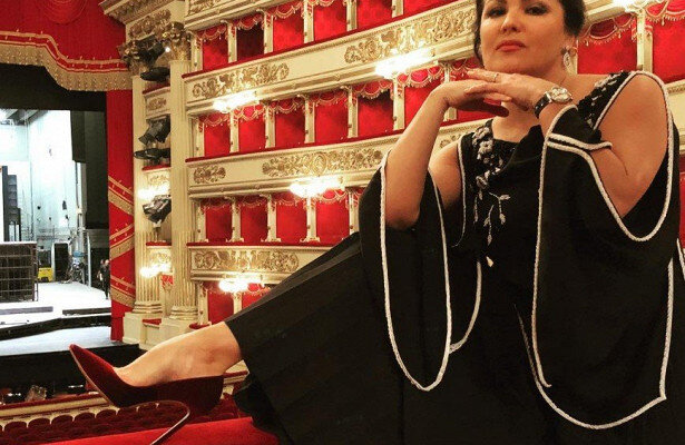 Оперная певица Анна Нетребко в дерзкой мини-юбке и на каблуках спела на праздничном столе