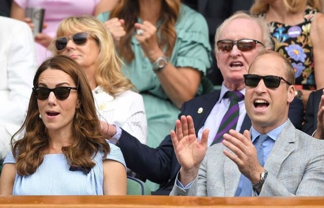 Воскресенье выдалось насыщенным у обеих герцогинь: Меган Маркл с мужем посетила премьеру фильма “Король Лев”, а Кейт Миддлтон — финал Уимблдона, где вручила приз победителю. Кейт Миддлтон вручила кубок Уимблдона Новаку Джоковичу Герцогиня Кембриджская вместе с другими зрителями мужского финала Уимблдона провела в напряжении почти 5 часов, наблюдая за игрой Новака Джоковича и Роджера Федерера. Учитывая, что герцогиня и её родители находятся в приятельских отношениях с Федерером, неудивительно, что его проигрыш огорчил её. Однако личные симпатии и переживания не помешали Кейт Миддлтон поздравить Джоковича с победой и вручить ему кубок Уимблдона: Перед началом матча герцог и герцогиня Кембриджские пообщались с юными теннисистами и с организаторами соревнования. А ещё получили в подарок крошечные именные кроссовки для принца Луи: Для этого мероприятия герцогиня Кэтрин надела голубое платье от Emilia Wickstead стоимостью 1390 фунтов стерлингов, а её муж надел рубашку такого же цвета. Выбор