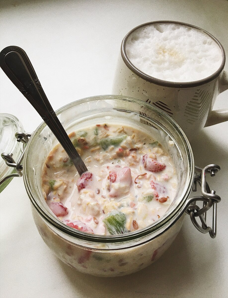Всем доброе утро! У меня оно действительно доброе, потому что завтрак пришлось готовить только дочери, себе я приготовила ленивую овсянку. 1 слой - 2ст.л. Овсянки долгой варки и заливаем ее любой молочкой, у меня был детский биолакт, нужно чтоб овсянку полностью закрыло. 2 слой - любые фрукты, у меня клубника и добавила 1ч.л. Семян льна 3 слой - 3ст.л. овсянки и заливаем молочкой, чтоб покрыло овсянку 4 слой - фрукты, у меня киви и 2ч.л. Мёда Все это я делала в баночке с крышкой размера 0,4л. Убираем на ночь и достаём утром, перемешиваем и наслаждаемся вкусняшкой 🤤 Рецепт очень простой, а ингредиенты могут быть разные 😍